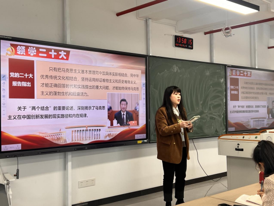 杜溯老师介绍了此次集体备课的目的、意义、课堂教学安排及教学组织实施方式,强调在教学中将党的二十大精神融入《概论》课,要求全体教师要全面把握党的二十大报告的内容体系和深刻领会党的二十大精神的内涵,结合课程体系找准切入点,将课程教学与实践相结合,真正做到学深悟透。