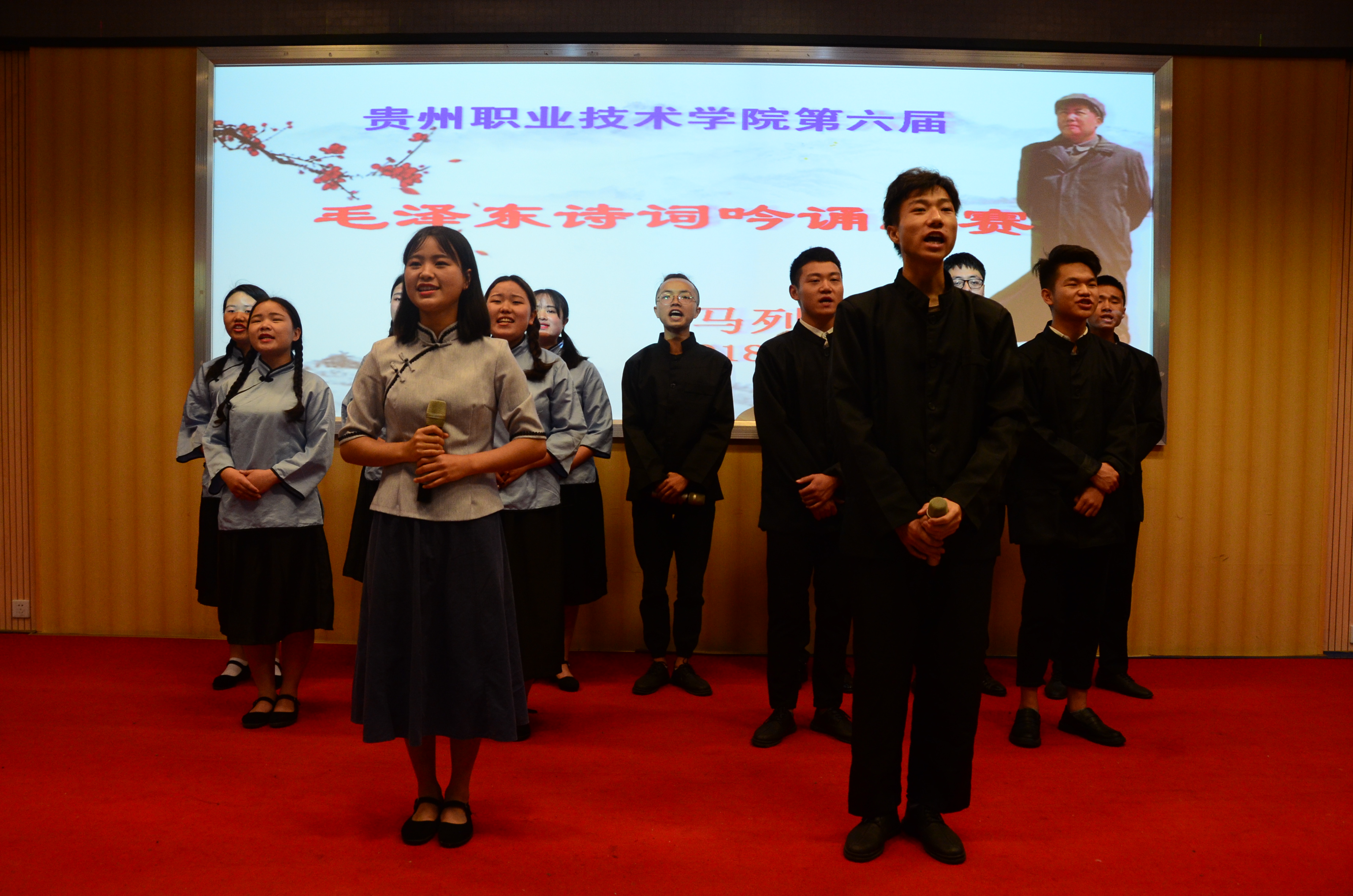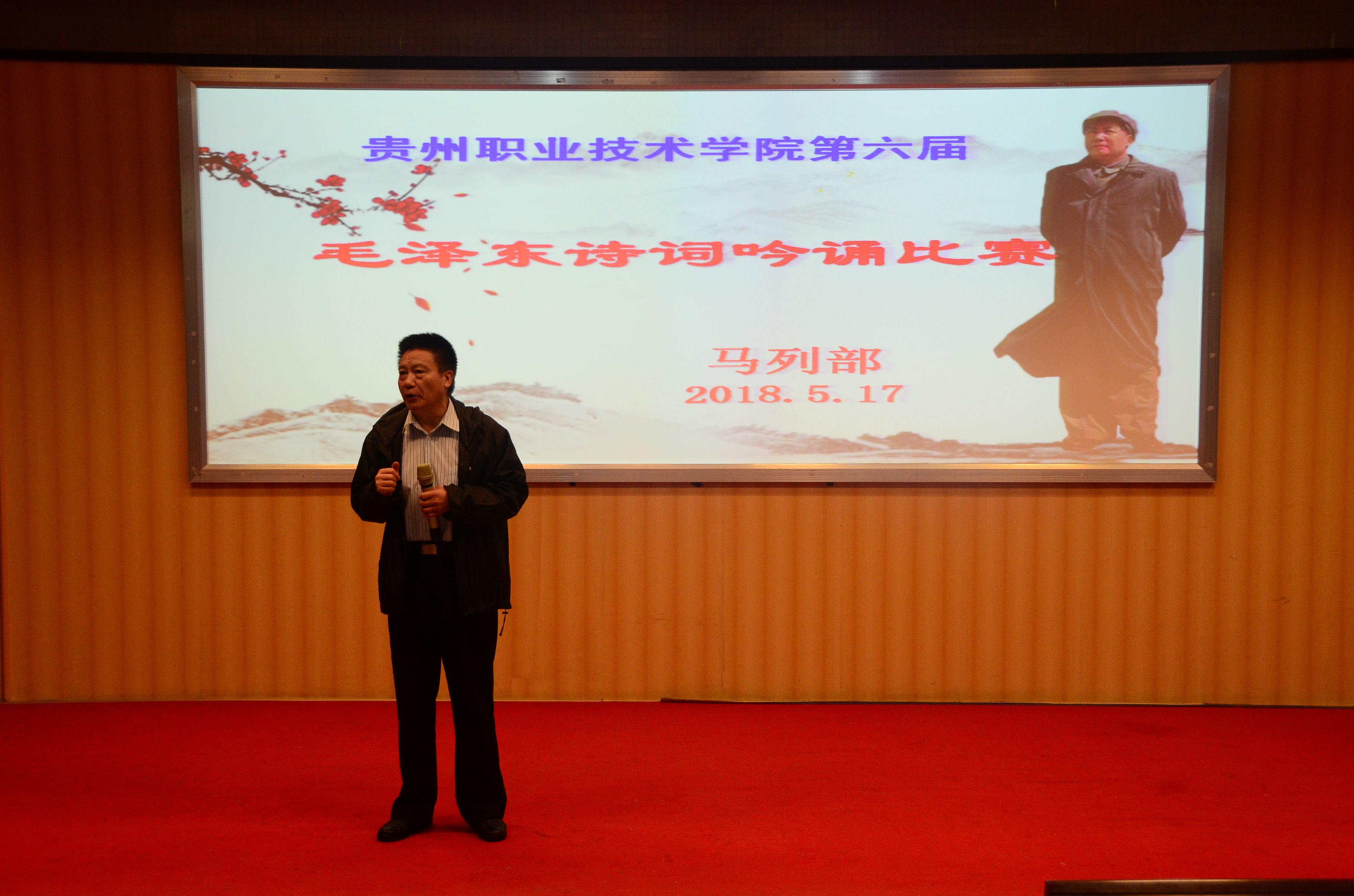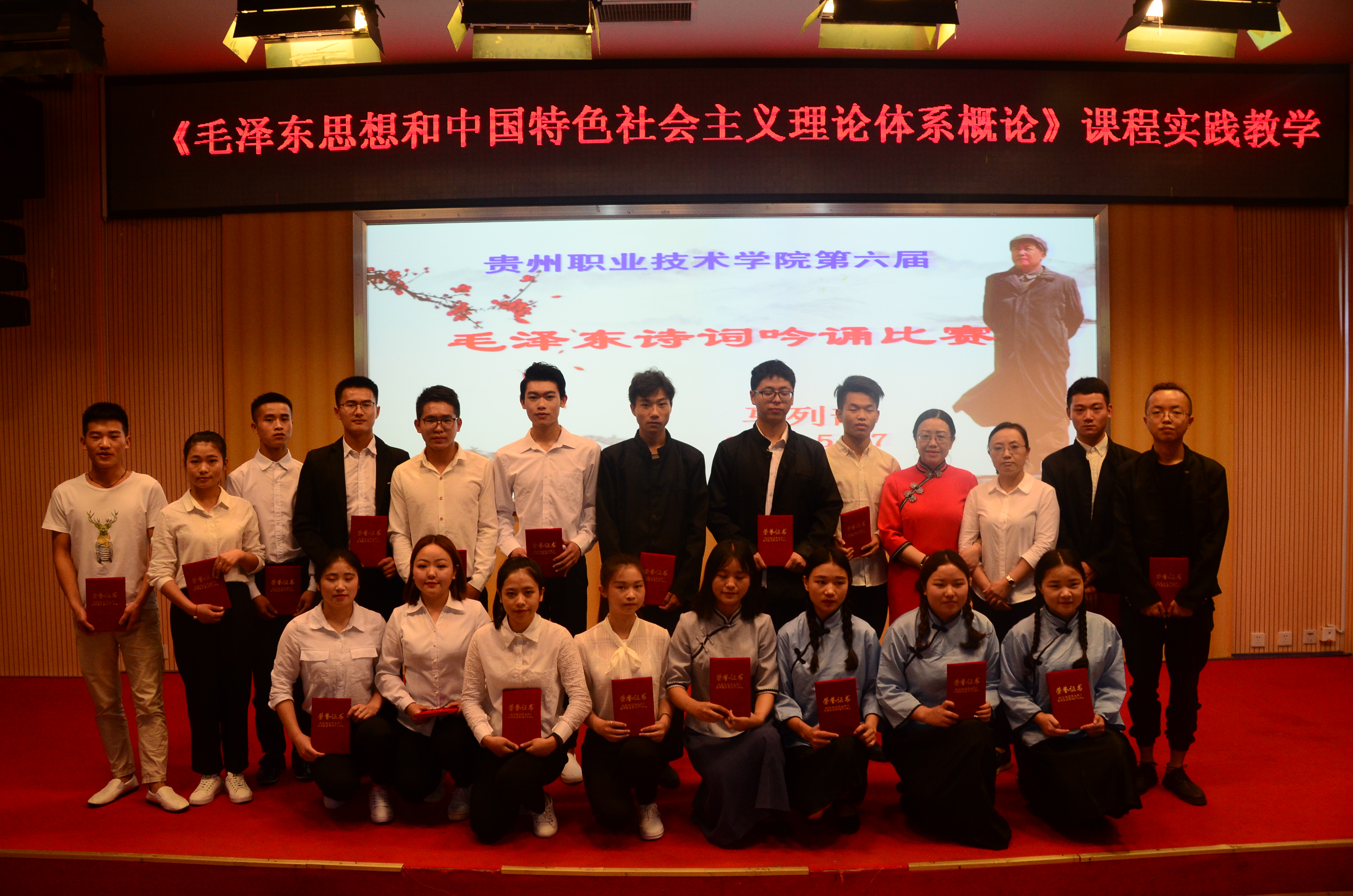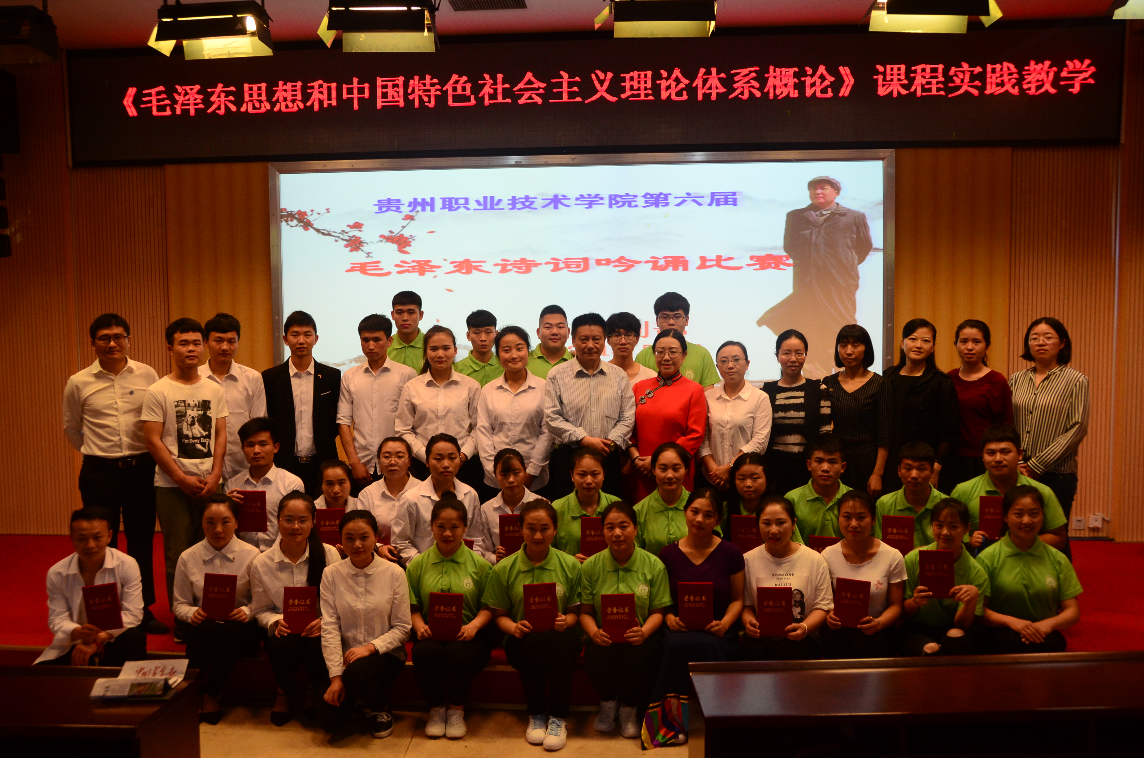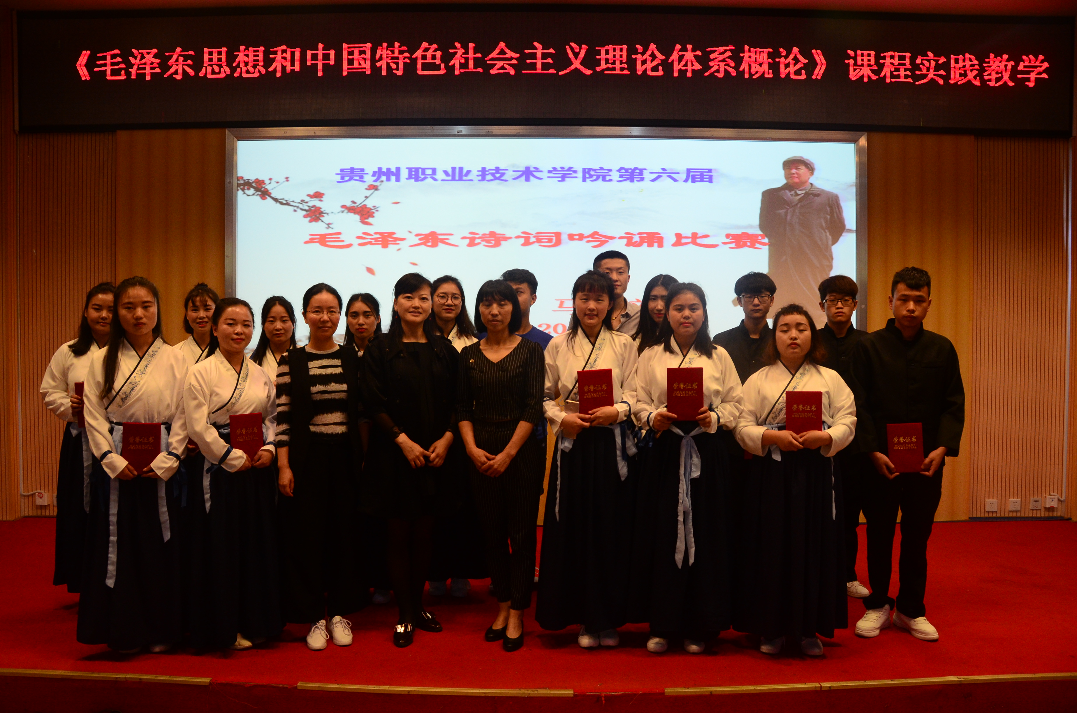 为了深入贯彻党的十九大精神,创新思政课教学形式,加强学生的思想政治教育,激发同学们对爱国主义经典诗词的浓厚兴趣,感知伟人深厚的文学素养和崇高的革命精神,2018年5月17日上午十点,我院马列部在学院图书馆二楼报告厅举办《毛泽东思想和中国特色社会主义理论概论》课程实践教学暨第六届“毛泽东诗词吟诵”比赛。学校关工委委员孙鲁痕教授、教学部副主任程守艳教授、陈云英副教授、陈维教授、马列部黄丹副教授担任本次活动的评委。马列部主任陈国敏教授、副主任谭永凤副教授以及教研室主任朱茜副教授、肖旭副教授、信息技术学院宋婷老师、刘月老师、张冬老师参加了本次活动。