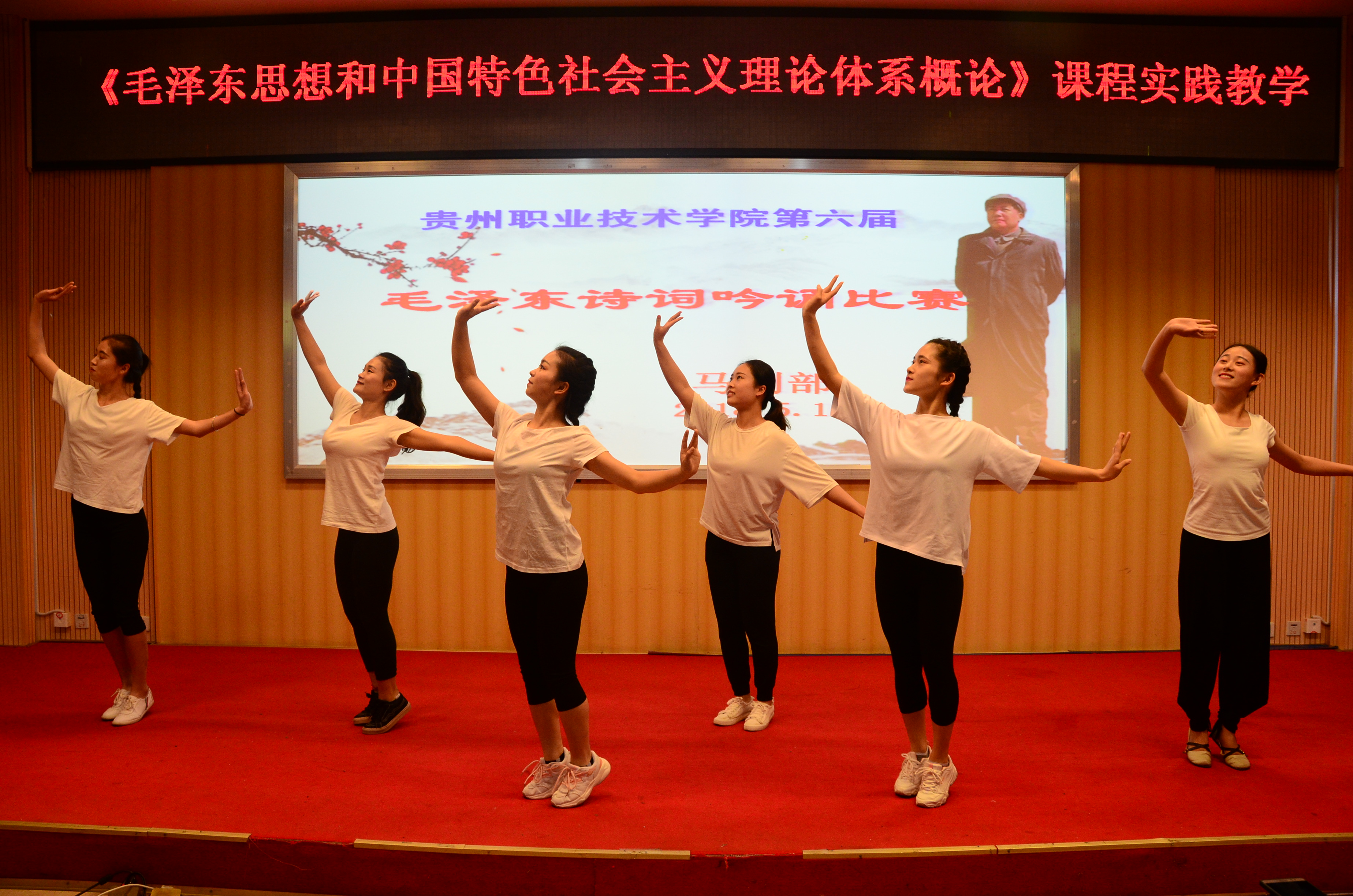 为了提高节目的质量,本学期承担《毛泽东思想和中国特色社会主义理论概论》课程的老师,利用课余时间在班级进行初赛、排练,每个大班报送一个节目参加比赛。通过对伟人诗词的吟诵,感受伟人精神,既可以增强同学们对理论知识的理解,又能发挥校园文化的育人作用,有利于培养学生综合素质,提升思政课教育教学效果,进一步增强思政课教学的针对性和亲和力。