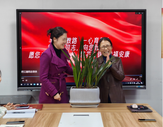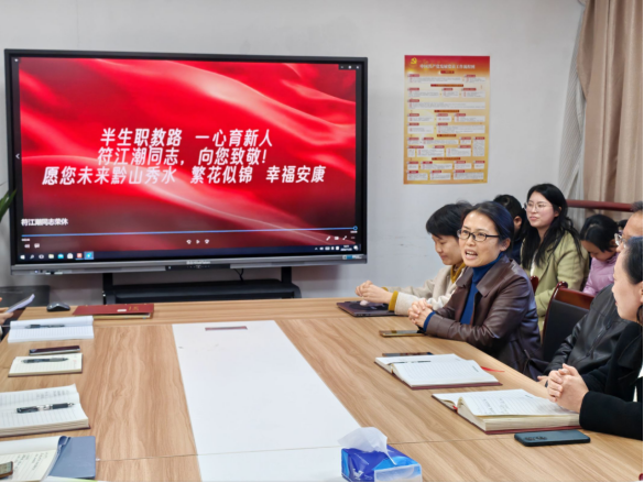 2025年11月25日,马克思主义学院以“致敬耕耘 传承匠心”为主题开展退休教师座谈会。学院本月荣休的符江潮老师受邀参加,学院领导班子、全体教师齐聚一堂,通过追忆共事时光、分享育人故事、共话未来发展,向深耕教育一线三十三载的符江潮老师致以最诚挚的敬意与美好的祝愿。座谈会由马克思主义学院程守艳院长主持。