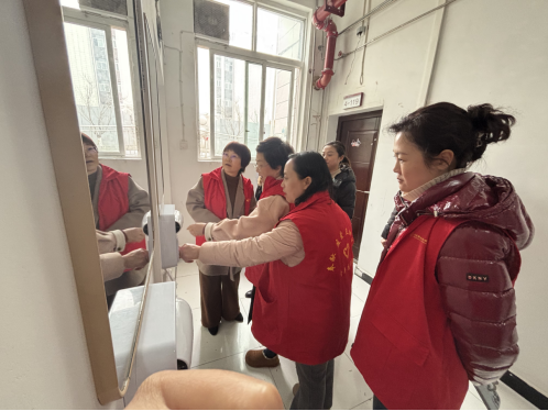 动员结束后,全体党员教师们身着红色志愿者马甲,迅速投入服务工作。大家分工协作、默契配合,有的弯腰清扫主干道的落叶与杂物,有的对OPEN广场的积水区域进行重点整治。冬日的阳光洒在忙碌的身影上,鲜艳的党旗在服务现场高高飘扬,红色马甲成为校园里最亮眼的“流动风景”。