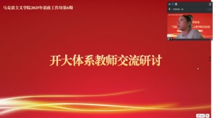 为深入学习贯彻习近平总书记对学校思政课建设重要指示精神,明晰开放教育场景下“马院+书院”协同育人的核心逻辑,探索协同育人实践模式,赋能开放教育思政课提质增效,10月23日晚,马克思主义学院通过腾讯会议开展全省开放大学体系思政课教师2025年思政工作坊第6期教学研讨活动,活动主题为“开放教育思政课如何落实‘马院+书院’协同育人”。省校马克思主义学院全体思政课教师及全省分校思政课教师参与研讨活动。活动由省校马克思主义学院“思想道德与法治”教研室主任肖旭博士主持。