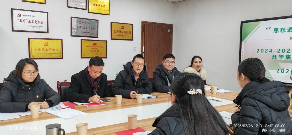 2025年2月26日中午,马克思主义学院“思想道德与法治”教研室组织开展2025年第1次集体备课活动,活动主题是学期。整体规划与重点内容安排。教研室主任肖旭老师主持集体备课活动,教研室全体教师参加活动